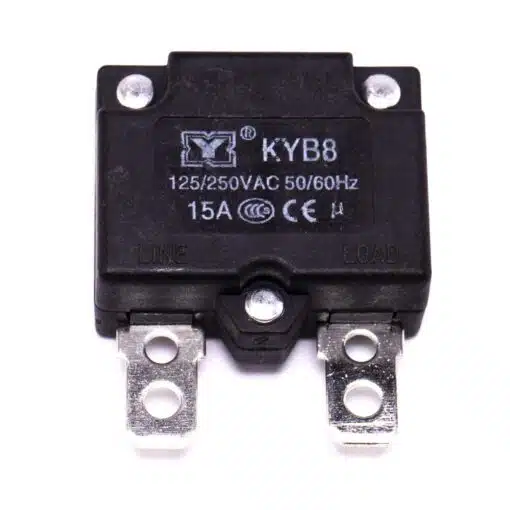 Deze automatische zekering is een overbelasting beveiliging van 15 Ampère. Bij overbelasting of kortsluiting zal deze zekering de stroom van elektriciteit onderbreken om verdere schade te voorkomen.